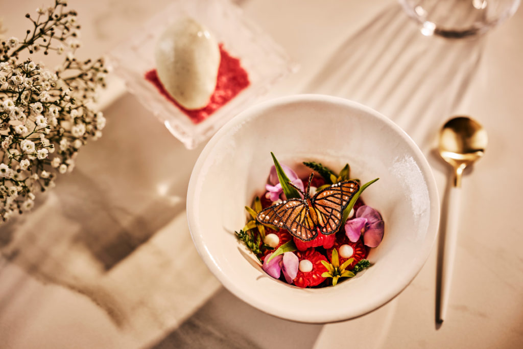 En søt påminnelse om smakene som kommer fra et bærekraftig og lokalt orientert kjøkken, der de lokale råvarene spiller hovedrollen, tilberedes med internasjonale teknikker og serveres med stil og eleganse til applaus fra et begeistret publikum fra hele verden.
