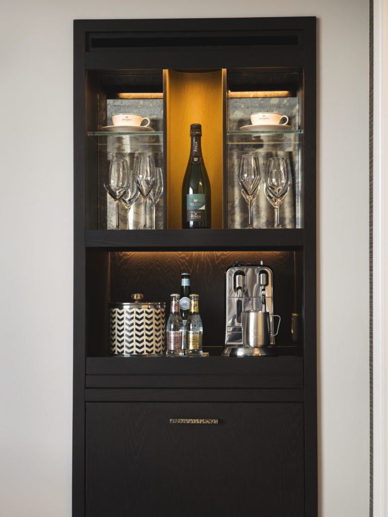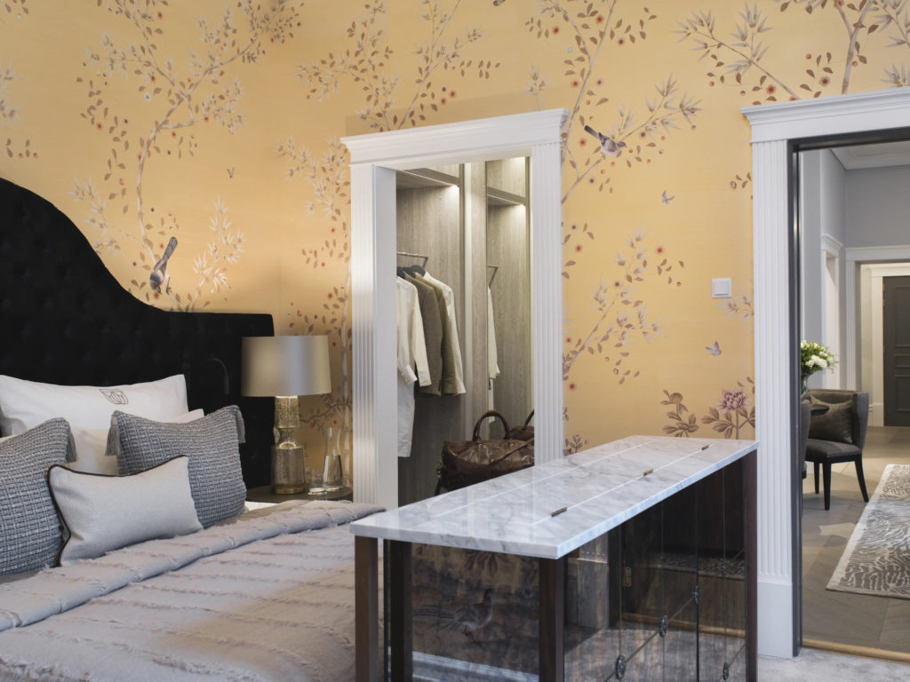 Highlights include a private elevator lobby, a personalised wine cellar, an historic grand piano (salvaged from Palmehaven and restored), a hammered brass and vintage mirrored wet bar, a gold bathtub, double shower and king-sized bed by Hästens.Go to The Tower Suite roomSignature Suite