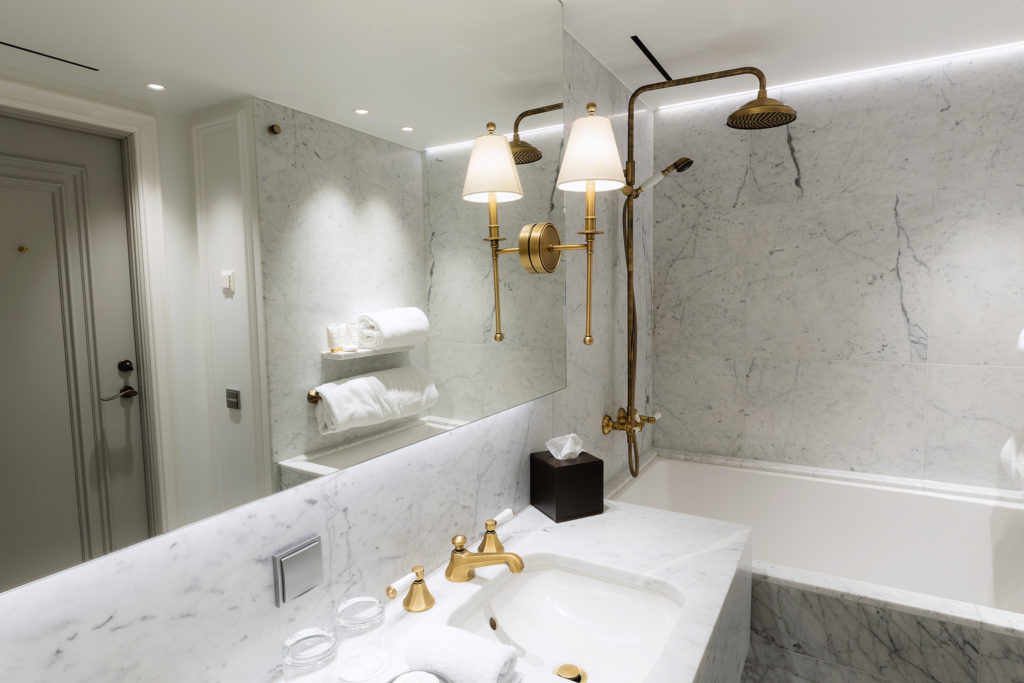 The Signature Suite is located in the 1897 building, with a balcony and prominent position at the front of the hotel. The suite also boasts a large living area, spacious wardrobes and hallways and a guest bathroom, making it the perfect place to entertain guests, business associates and friends. At the end of the evening you can retire to the spacious high-ceilinged bedroom, with en suite marble bathroom, complete with stand-alone golden bathtub. Enjoy the perfect night's sleep in the 2m x 2m handcrafted Hästens bed, and for those extra special occasions you can take full advantage of the 'glam' room: a private beauty room, with Hollywood makeup mirror.Go to Signature Suite room- FROM 81 M² / 877 FT²
